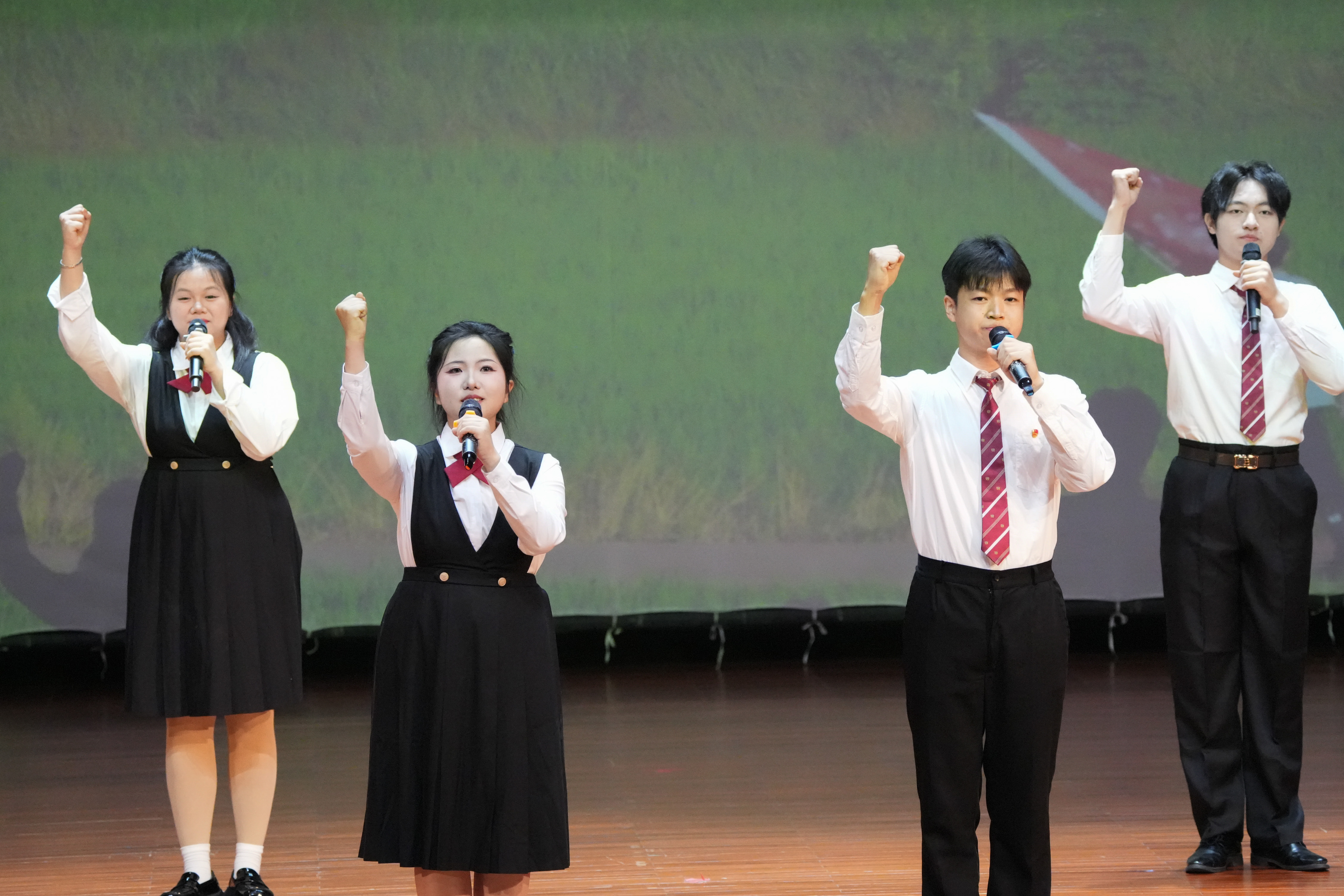会上,杨清源宣读学校2025年共青团工作系列表彰文件。与会领导分别为获奖的先进集体和先进个人代表颁奖。学校团委书记孙洁晶作2025年共青团工作总结。全体师生共同观看舞蹈《茉莉花》、歌伴舞《志愿者之歌》、朗诵《大地课堂•青春答卷》、歌曲《向光而行》等表演。
