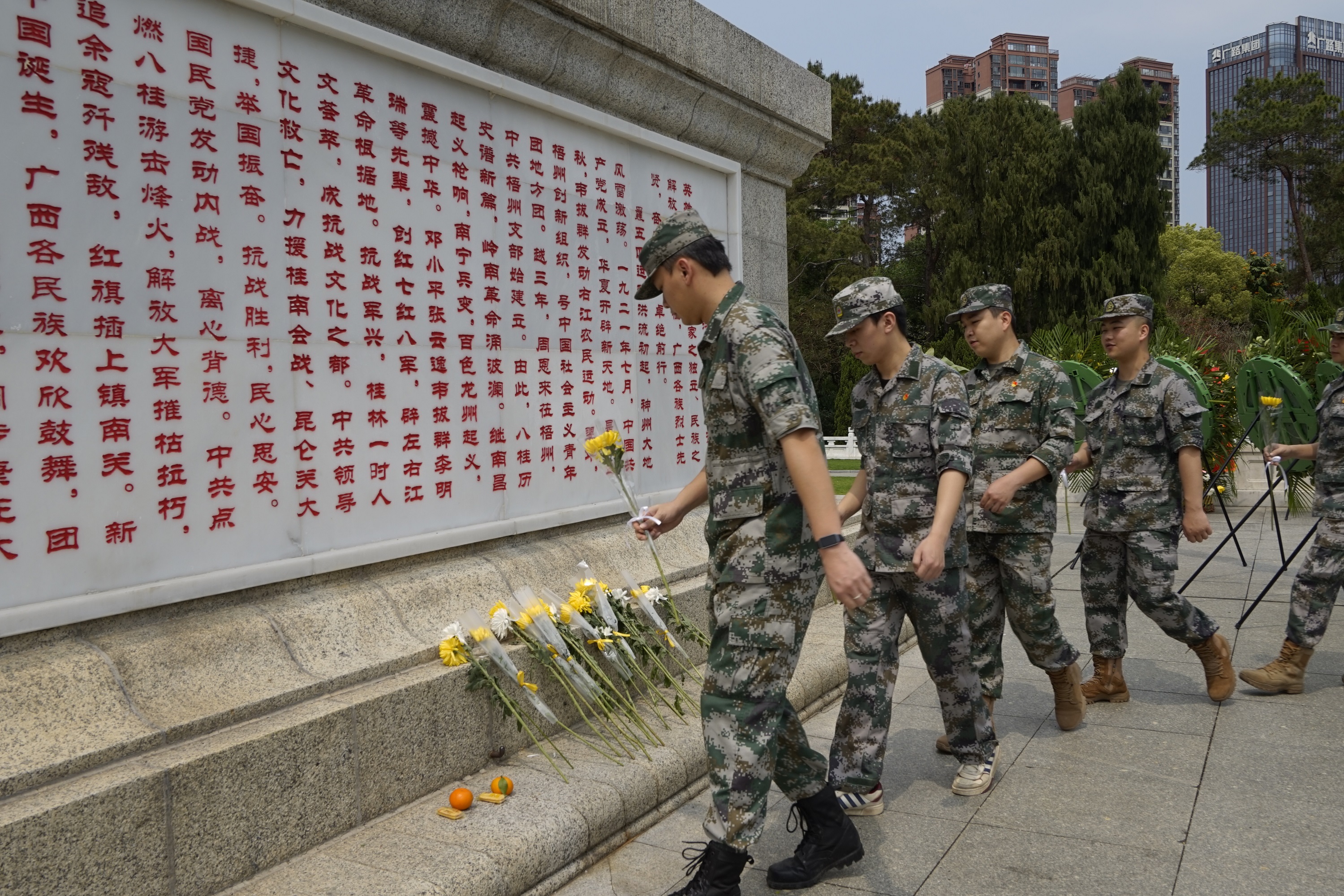 活动现场庄严肃穆,纪念碑上“革命烈士永垂不朽”八个大字熠熠生辉。在庄重的氛围中,师生代表依次开展肃立默哀、敬献花圈、鞠躬致敬、代表致挽词、瞻仰烈士纪念碑、向烈士敬献鲜花等祭奠环节。祭扫仪式结束后,全体师生共同参观“毛主席接见广西各族人民纪念馆”和镇宁炮台,深入了解广西革命斗争史。